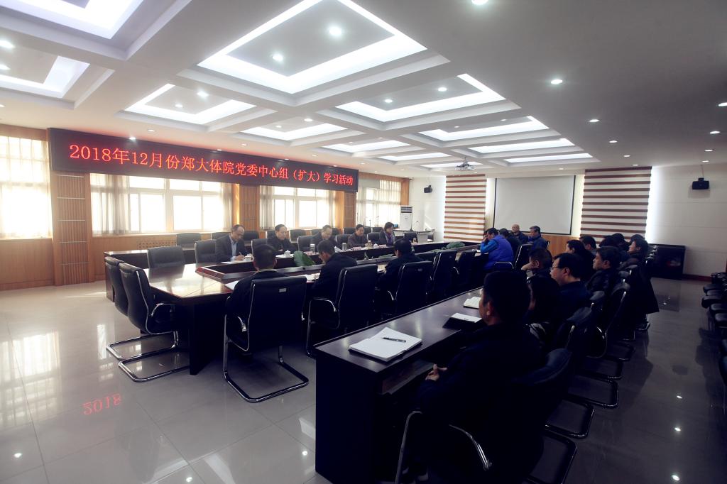 12月4日下午,学院党委在综合楼第三会议室召开党委中心组(扩大)学习会,学习贯彻习近平总书记在全国教育大会上的重要讲话和全国教育大会精神。院党委书记张绍通主持会议并带领与会人员对全国教育大会精神进行深入学习;院长杨国安传达了习近平总书记系列讲话《守纪律,讲规矩》、《增强看齐意识》;纪委书记郑焕民传达《任正晓书记在全省深化扶贫领域腐败和作风问题专项治理工作推进会上讲话摘要》。院党委委员,中层干部共38人参加学习活动。