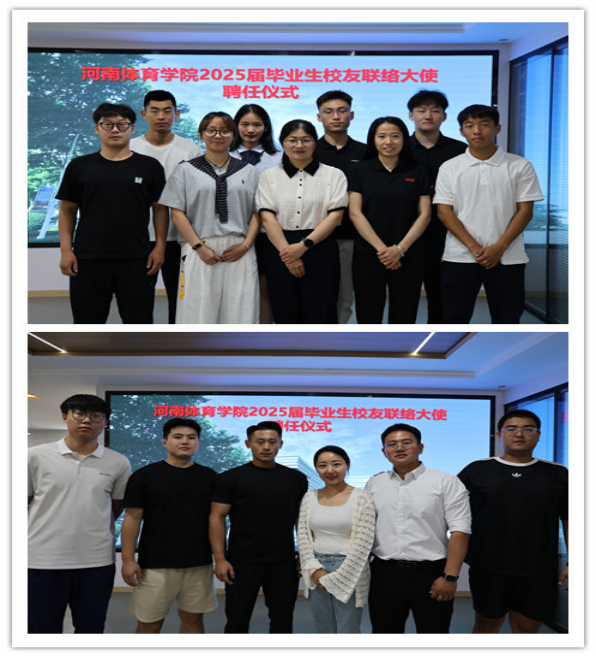 6月30日上午,2025届运动训练系毕业生校友联络大使聘任仪式在一站式社区举行,党政办公室(校友办)主任张广明、副主任顾宁博,运动训练系党总支书记姚三强、副书记赖红升及相关教师、校友联络大使出席本次仪式。